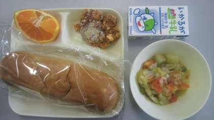 3月6日(水)給食の献立は、とうふのミートグラタン・押し麦と野菜のスープ煮・デコポン・パン・牛乳でした。