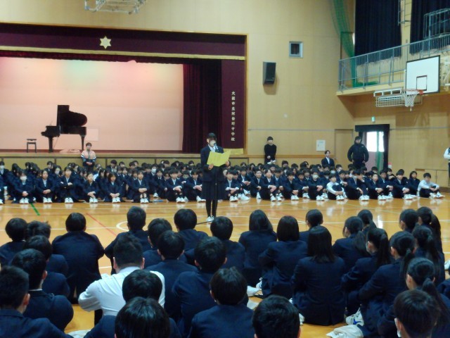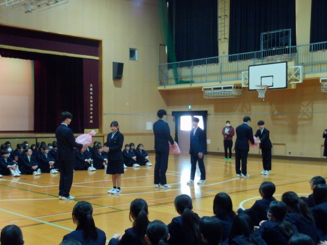 最初に在校生から3年生に贈る言葉、次に3年生から在校生にお礼の言葉が送られました。
