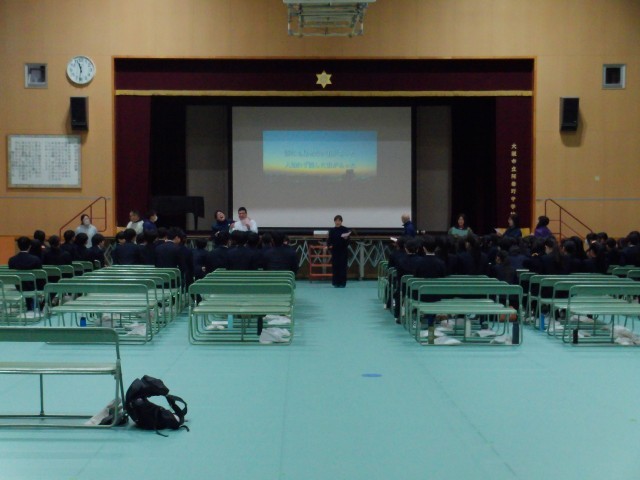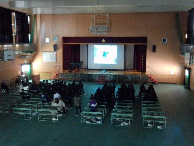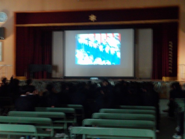 三年間の思い出ムービーを見て、学年の先生からの歌のサプライズがありました。