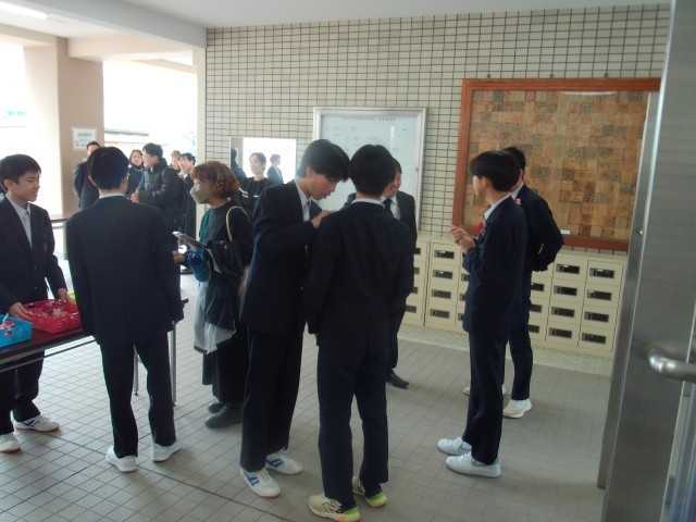 朝、3年生が最後の登校をしてきました。
