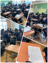 一年生は、6時間目に「ひとり百人一首大会」を行いました。 各クラス、一人一枚、百...
