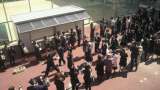 花道を歩きながら学び舎をあとにする第61期卒業生たち
