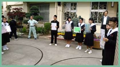 本日(17日)より生徒会役員候補者によるあいさつ運動が始まりました。大きな声であいさつを交わす場面を期待します。また、3年生は学年集会が運動場で行われました。体育館の前で行われています。