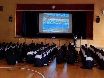 2年生は4時限目の特活の時間に体育館で校外学習の説明が行われました。