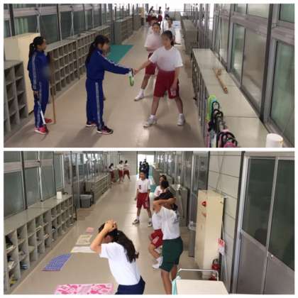 5月1日、新しい元号である「令和」の初日。新聞も大きく報じられています。校内は、雨のためグランドが使えず、ソフトテニス部や陸上部、ソフトボール部が廊下や格技室で練習中でした。