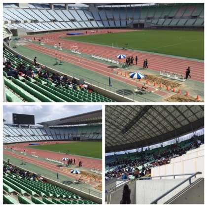 長居競技場で陸上フェスタが開催されています。午前9:30スタートの3000M走で始まりました。