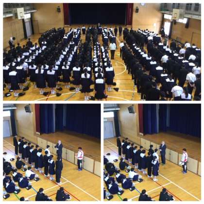 長い連休がありました。あけて初めての全校朝礼が、体育館でありました。はじめに各学級の役員の認証式があり、代表として3年1組の生徒に認証状を授与しました。そして、その後、校長先生から1学期がスタートして、1ヶ月がすぎ、やり直しが必要な人にはチャンスの時なので、頑張ってほしいという話と「令和」が始まりましたが、「平成」の時代になかったことや物が出てくると予想されています。「令和」の時代に活躍するうえで必要なことは「人にしかできないこと」「自分にしかできないこと」だと思うので、しっかりと考え、人とコミュニケーションをとり、皆さんに活躍してほしいというお話をされました。