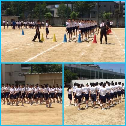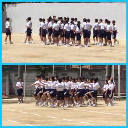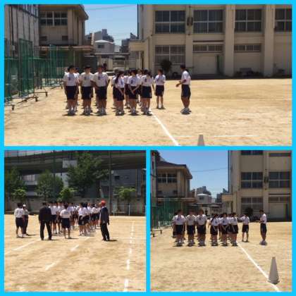 6月8日(土)予定の運動会の練習が始まりました。1,2限は2年生が、そして、3,4限は3年生が練習をしました。写真は3年生の行進の練習をしているところですが、体育委員を中心に足並みをそろえ、学級の生徒の気持ちを一つにできるように積極的に練習していました。