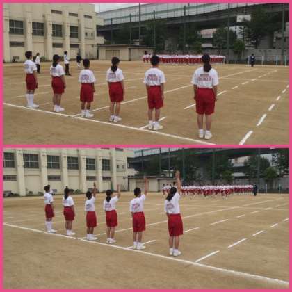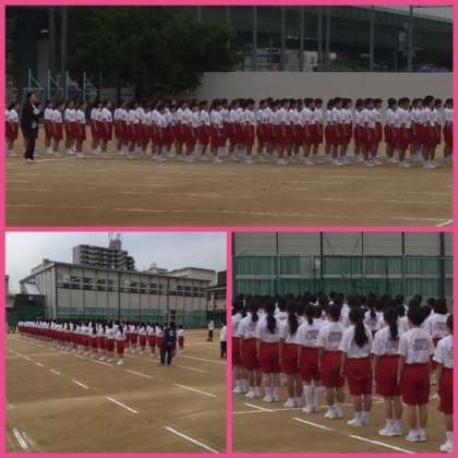 1年生入学後はじめての運動会の練習がありました。全体で、運動会の意義と参加への心構えを聞き、体育委員中心に練習を行いました。