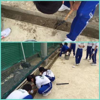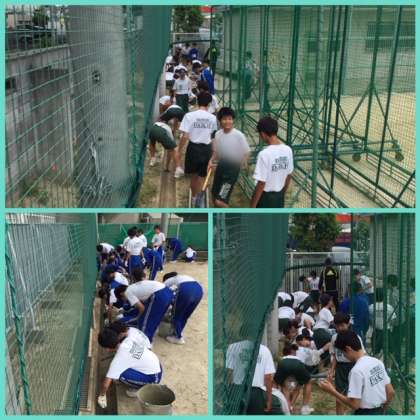 6限、2年生は北グランドの側溝清掃を行いました。雨天時に水はけが悪くなる一因として、側溝に土が詰まったままになっていることでした。溝一杯に詰まった土を取り除く作業をみんなで協力をして取り組んでくれています。終了時には、側溝は土が取り除かれた状況になりました。2年生のみなさん、ご苦労さんでした。