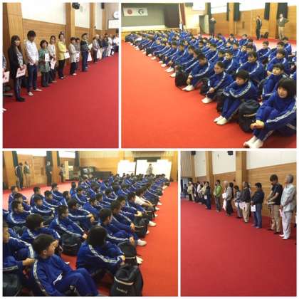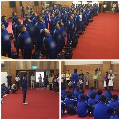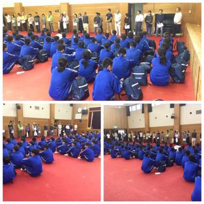 農家での民泊体験でお世話になるのかの方たちが迎えにきてくださいました。生徒代表のご挨拶に続き、校歌を斉唱しました。その後、それぞれの民家に案内されました。