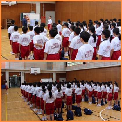 宿舎への入所のセレモニーがありました。宿舎の担当者の方の説明や生徒代表あいさつ、そして、修学旅行で先輩も元気よく歌って、体験先のスタッフの方々を感動させた校歌斉唱を行いました。