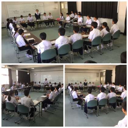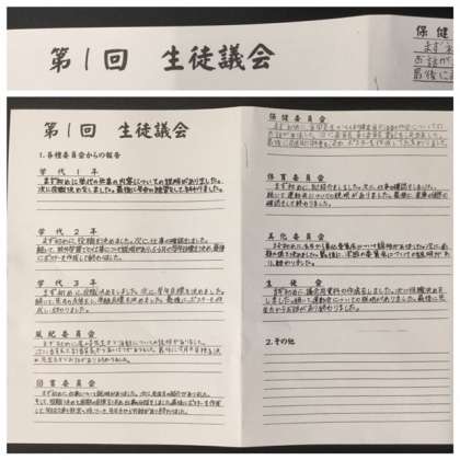 認証式後、初めての生徒議会が行われました。生徒会役員と各学級代表、各委員長が出席しています。まず、自己紹介から始まりました。