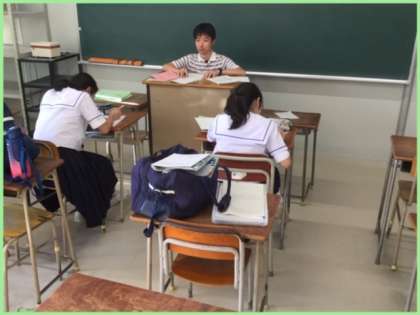 5月27日(月)、28日(火)は、今学期の中間テストです。ある学級では、放課後に学習会をしていました。部活動で、学習会をしている部もあります。また、教科の先生に質問をして、教えてもらっている場面もありました。