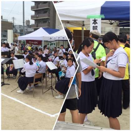 北粉浜小学校で、粉浜まつりが開催されました。生徒会、吹奏楽部の皆さんがお手伝いをしました。