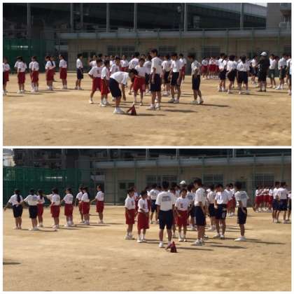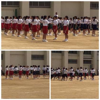 応援の練習を各団に分かれ、3年生がリードして練習しました。
