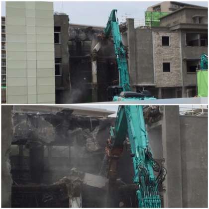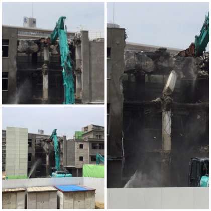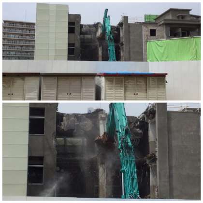 8日(月)から校舎の取り壊し作業が始まりました。写真のように、重機で取り壊しが行われています。