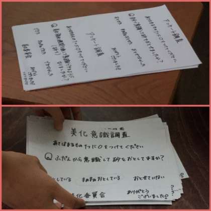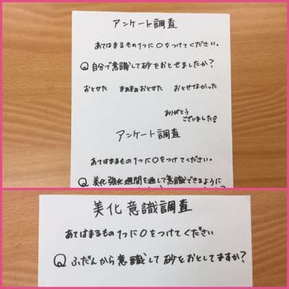 生徒会の美化委員会が意識調査を行いました。この結果は、来週の美化委員会の発行する新聞に載せる予定です。