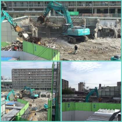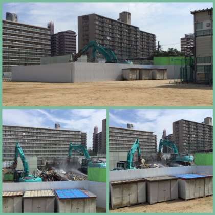 16日(火)、朝の工事の様子です。すっかり校舎が解体されています。