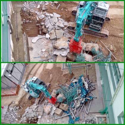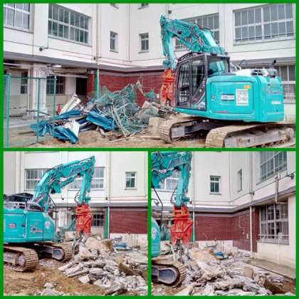 校舎南館と体育館とをつなぐ通路の工事に伴って、バックネットなどを撤去しています。