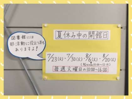 図書室の開館予定日です。部活動に役立ちそうな本の紹介もしています。