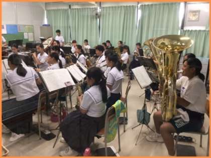 音楽室の工事のため、仮設校舎の教室を使って、練習を行っていました。