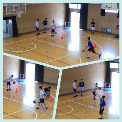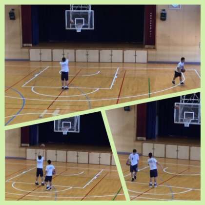 午後の体育館では、男子バスケットbポール部が活動していました。