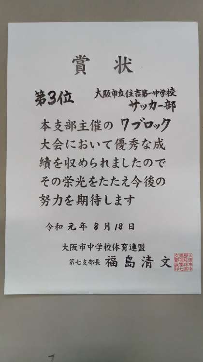 サッカー部は、先日行われました秋季総体予選7B大会において、見事3位に輝きました。おめでとうございます。