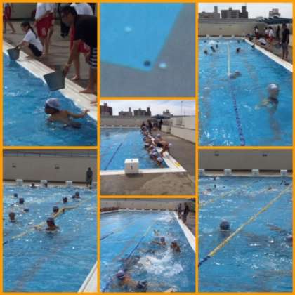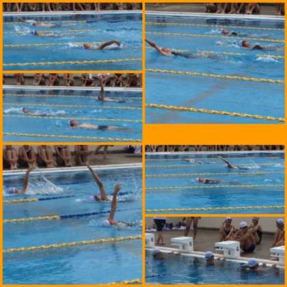 個人sw湯目が始まりました。種目は、個人25Mバタ足、25M平泳ぎ、25M自由形、25M背泳、50M平泳ぎ。団体競技として碁石拾い。