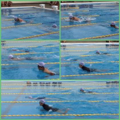 25Mバタ足、25M平泳ぎ、25M自由形、25M背泳ぎ、50M自由形と続きます。