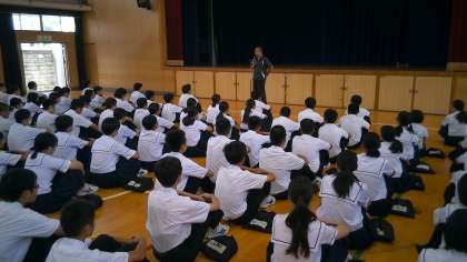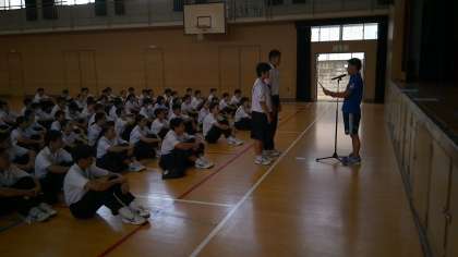 昨日実施された水泳大会の表彰がありました。また、三輪先生からは2学期の学習についてお話がありました。