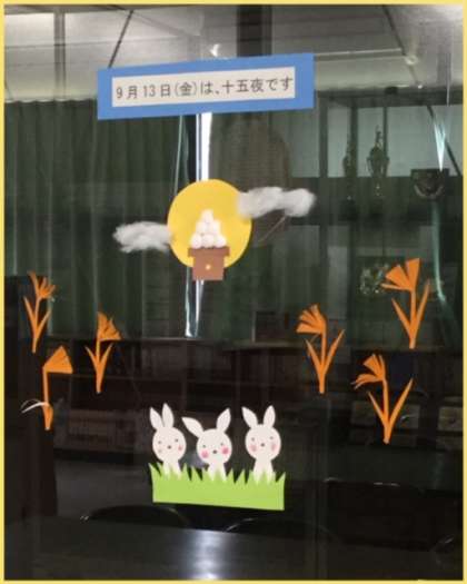 という内容でした。日頃から、災害時に備えて、家族で話し合ってください。そして、図書室の扉に、十五夜のようすを知らせる折り紙作品がありますが、来週13日(金)が十五夜だそうです。いつまでも災害のない世界で、美しい月がいつまでも眺められたらいいですね?!