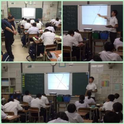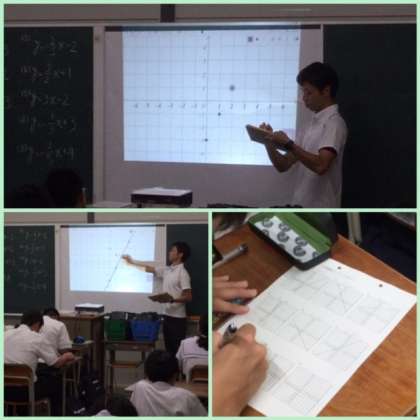 2組は、数学です。一次関数の学習です。パソコン画面、タブレットを使っての授業です。
