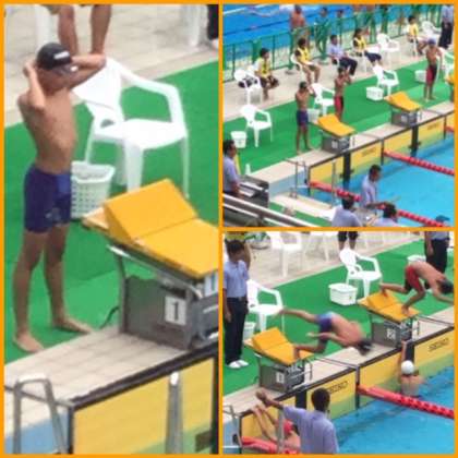 一年生の大原君が、朝潮橋の丸善インテック大阪プールで大阪府の学年別水泳大会に出場しました。一年生100mバタフライ第1レーンで泳ぎました。