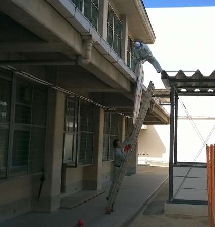 今日、管理作業員さんが、格技室の窓に取り付けをしてくれました。