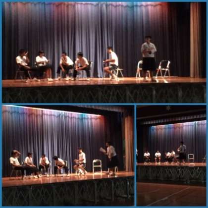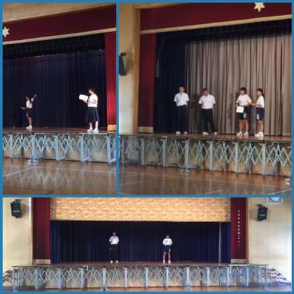 3年生は、午後、体育館で学級劇の練習です。動作の確認など、クラスごとに工夫をして取り組んでいました。