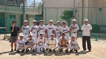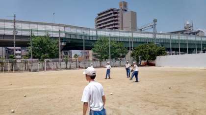 男子ソフトボール部は、大阪市の大会で優勝しました。平野北中学校、上宮中学校、常翔学園中学校と対戦し、全勝で優勝しました。(写真下は、練習風景)