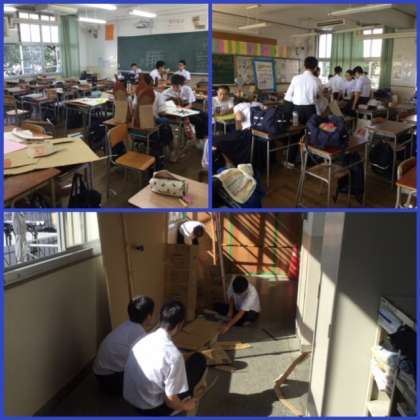 午後、3年生は文化祭の取り組みがあり、体育館や格技室、教室で取組が行われました。