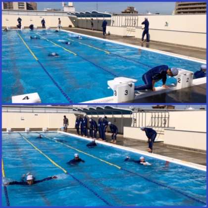 水泳授業のシーズン終わりに3年生は、着衣水泳に取組みました。服を着たまま泳ぎますが、水泳の得意な人でも、泳ぎにくいことが経験できました。さらに水の中で、来ている服を脱ぐ作業がいかに難しいかも経験できました。