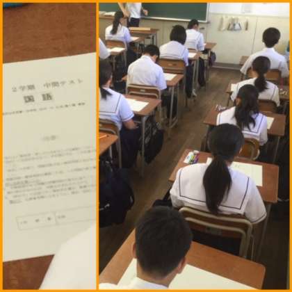 9日(水)、中間テスト初日です。各学年2時間テストを受けて帰ります。午後は、先生方の研修会が全市で行われます。明日は、3時間のテストです。