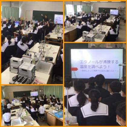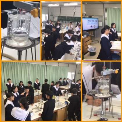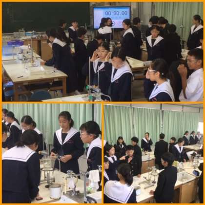 後期時間割が始まり、再び授業の様子を参観に行きました。3限、1年2組の理科の授業を理科室で行われました。