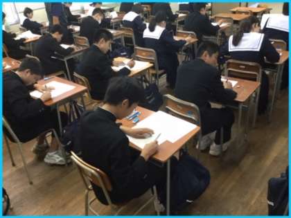 年生は、10月の実力テストを受けました。卒業後の進路を考えるときに大切なデータとなる10月の実力テストです。みんな真剣に受けていました。