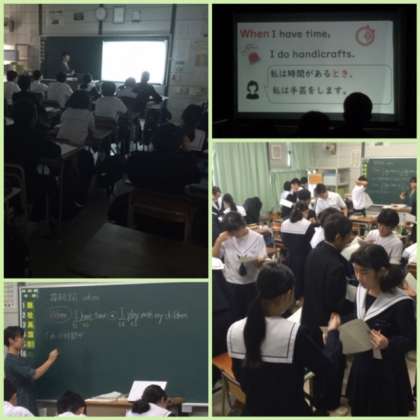 25日(金)、2年2組の3限、英語の授業です。接続詞「when」を使っての学習です。グループ学習を通して、楽しそうに授業に参加していました。