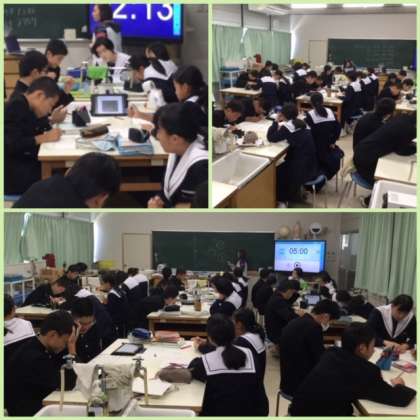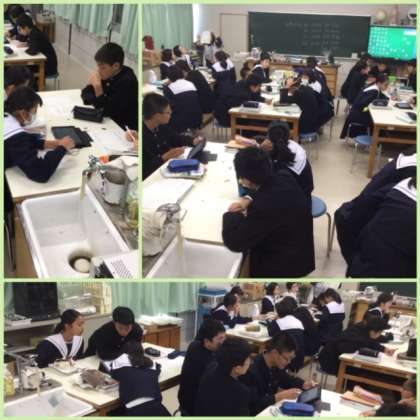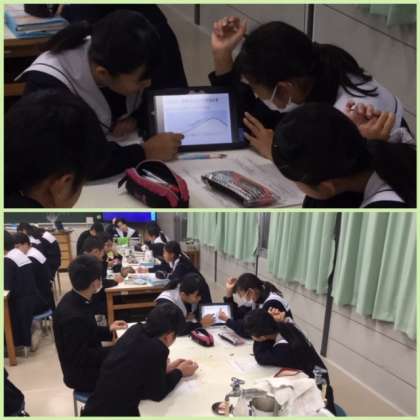 2限、2年2組の授業は理科です。雲のできるまでの学習です。理科室で、タブレットを使っての学習です。
