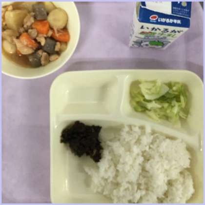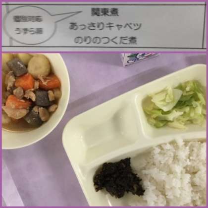 本日の献立は、関東煮、あっさりキャベツ、のりのつくだ煮です。