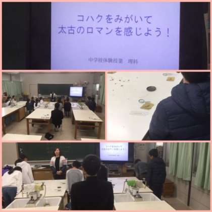 その後、希望教科ごとに班別に分かれて、教室に移動し、中学校の授業を体験しました。(上から、理科、技術、国語の授業)