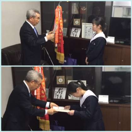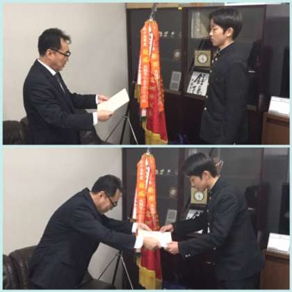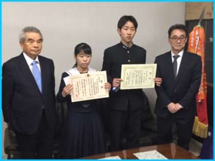 3年生の夏休みの宿題になっていた中学生の「税についての作文」で、本校3年生の林君と中山さんが表彰されました。林君は、「住吉・住之江地区租税教育推進協議会長賞」を住吉税務署長さんから表彰されました。また、中山さんは、住吉納税貯蓄組合連合会長さんから税貯蓄組合大阪府総連合会優秀賞」で表彰されました。