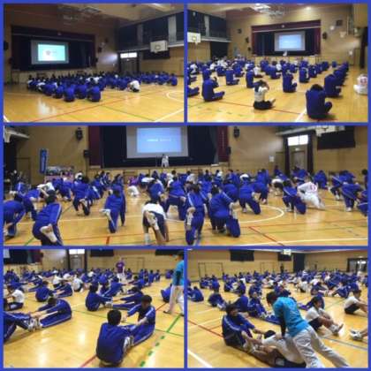 4限、3年生のダンス教室です。やはり、柔軟性に個人差がありました。日頃からストレッチをした方がいいですね。
