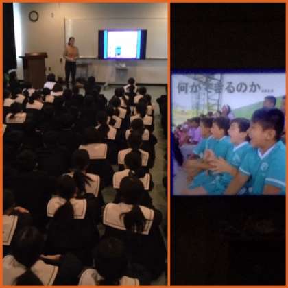 3,4限、全学年で国際理解教育に取り組みました。住之江区役所の協力で、JOCAの人々に来校していただき、「世界の人々と共に生きるために〜私たちのできること〜」をテーマに講師になっていただき、学びました。1年生は多目的室で福谷さんから「エクアドル」での活動を教えていただきました。