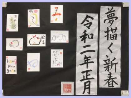 令和2年を迎え、一年の初めの目標を立てているところではないでしょうか?本校では、すでに部活動も始まっています。書道部の作品を紹介します。